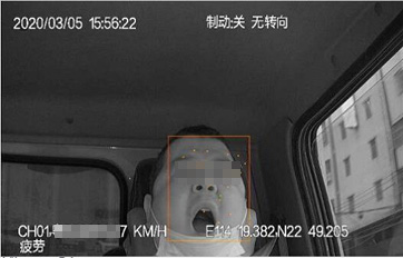 正是通過(guò)安裝在貨車上方的DSM攝像頭,并結(jié)合后臺(tái)AI算法,當(dāng)駕駛員開(kāi)始打瞌睡時(shí),設(shè)備上的算法是能夠識(shí)別出他的疲勞狀態(tài),就可以發(fā)出預(yù)警。