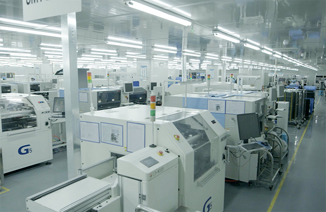 走進惠州博實結的生產車間,13條SMT生產線正在運轉,各種機器設備發出輕微的聲音,顯示屏上清晰地顯示著當時的拼板數、出錯率、識別率等指標,而每條生產線能看到的工人寥寥無幾。